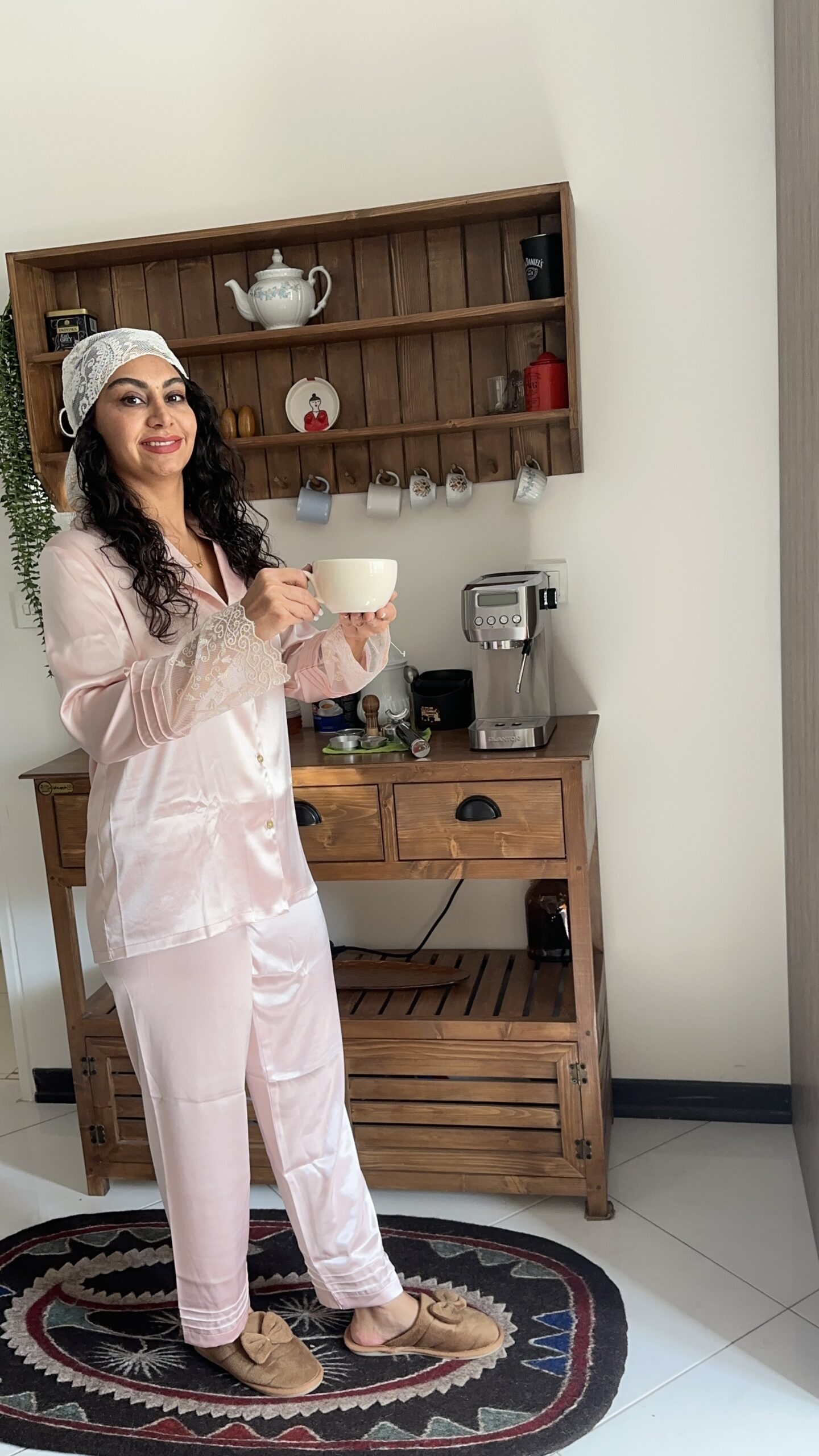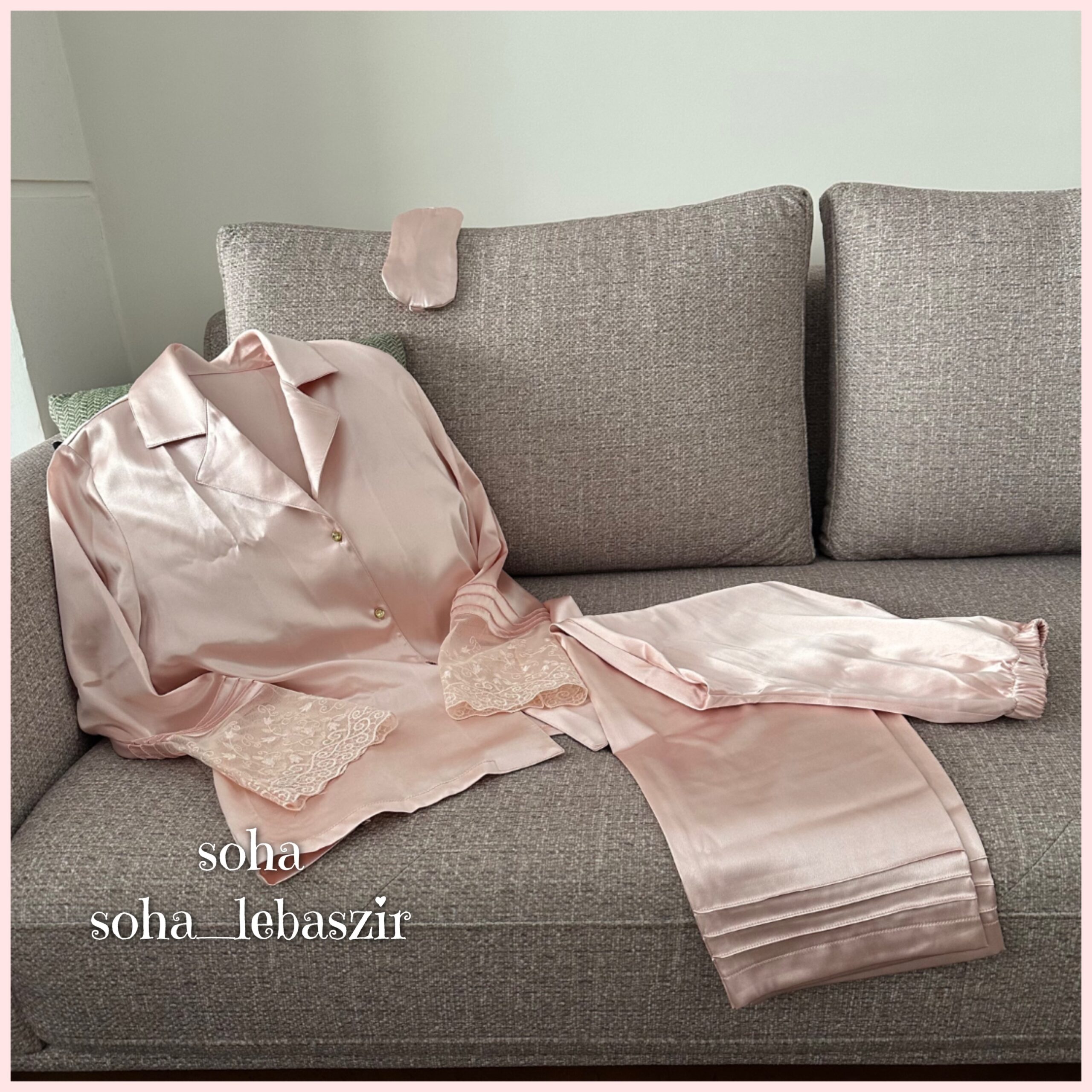 ست پیراهن شلوار ساتن سیلک ترک با جنس لطیف ابریشمی با تنخور زیبا و کیفیت و دوخت عالی