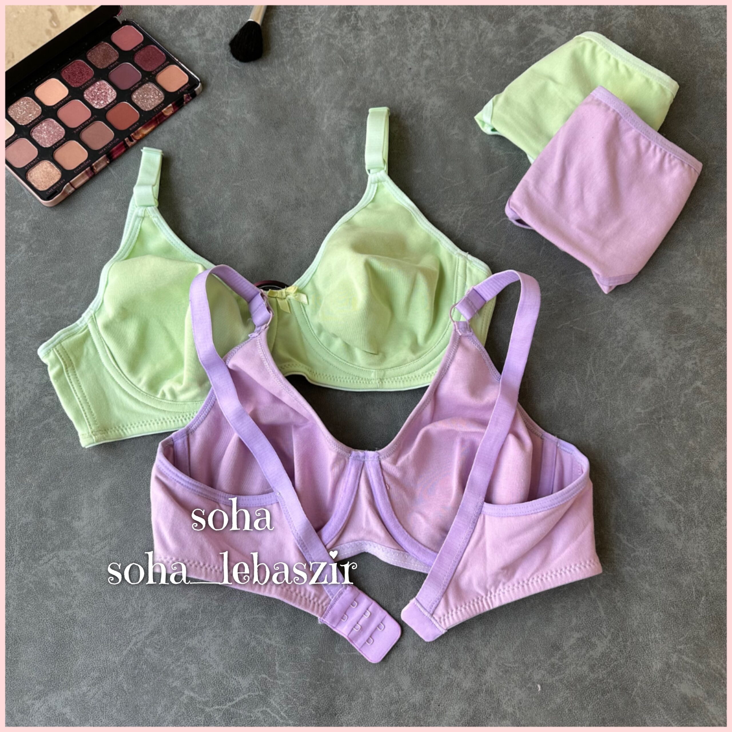 🌿 این ستهای نخی لطیف، بدون اسفنجن ولی چون فنردارن و کاپش پرسیه کاملاً سینه رو گرد و خوشفرم نگه میداره و خیلی داخل بدن سبک هستن انگار هیچی داخل بدنت نیست مخصوص وقتایی که فقط راحتی میخواین و یه رنگ قشنگ که حالتون رو خوب کنه.